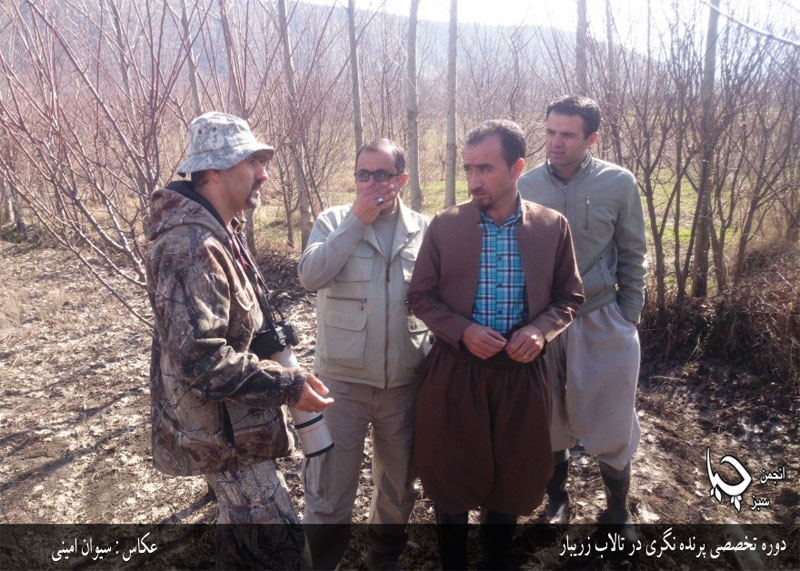 در ادامه ی دوره پرنده شناسی و پرنده نگری تخصصی که توسط اداره کل حفاظت محیط زیست استان کردستان برگزار شد روز سوم این دوره که با کمک اداره حفاظت محیط زیست مریوان به پرنده نگری در تالاب زریبار اختصاص داشت با حضور محیط بانانی از تمام شهرهای استان کردستان با تدریس استاد پرویز بختیاری کارشناس ارشد محیط زیست در چند نقطه ی تالاب برگزار شد و محیط بانان با دوربین و تلسکوپ های مخصوص به رصد پرندگان تالاب پرداختند از جمله پرندگان مورد رصد عبارت بودند از اردک سر سبز، اردک ارده ای، نوک پهن، خوتکا معمولی، گیلار، آنقوت، لک لک، آبچلیک پا سرخ، پاشلک، انواع کاکایی، اگرت ها، حواصیل، چنگر و پرندگان دیگر . ماهی خورک ابلق هم که با توجه به مشاهده در این زمان از سال در تالاب زریبار مورد توجه استاد بختیاری قرار گرفت.