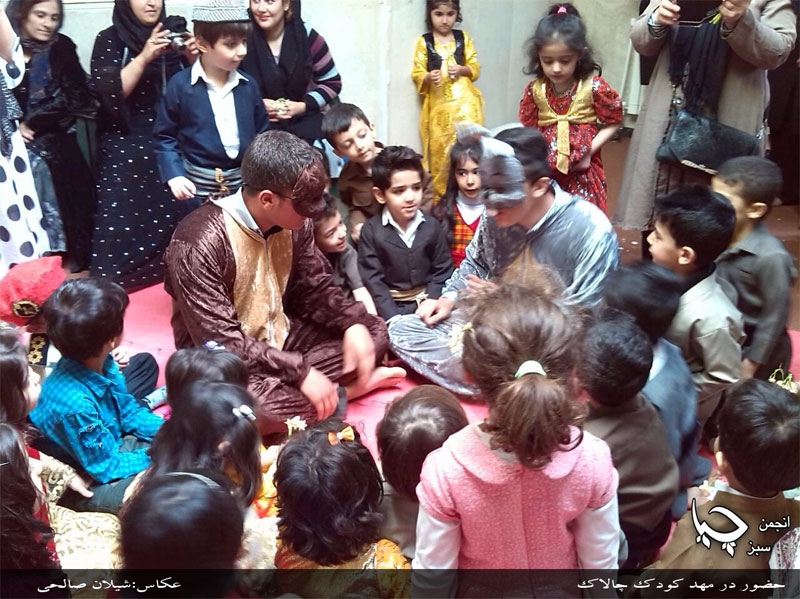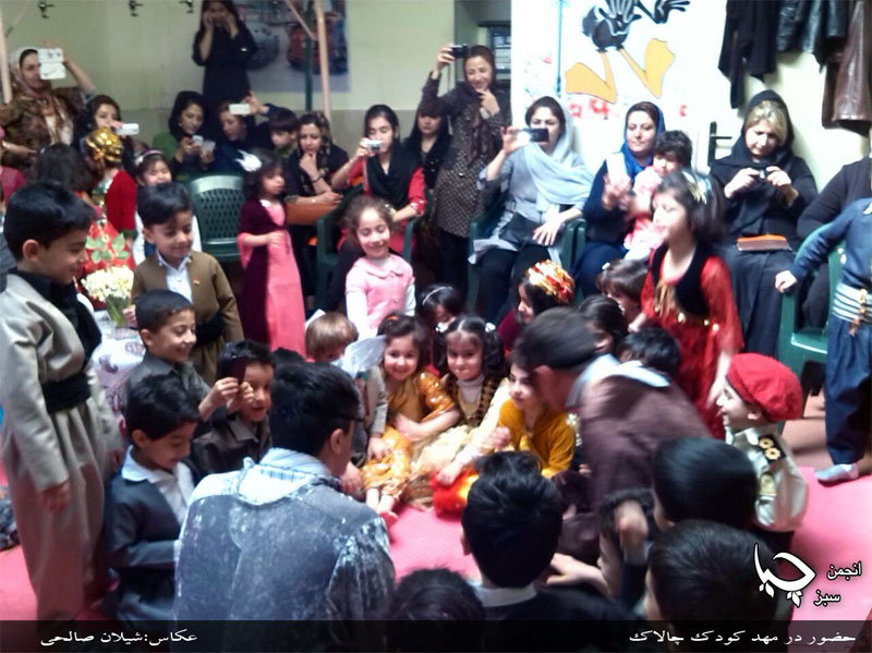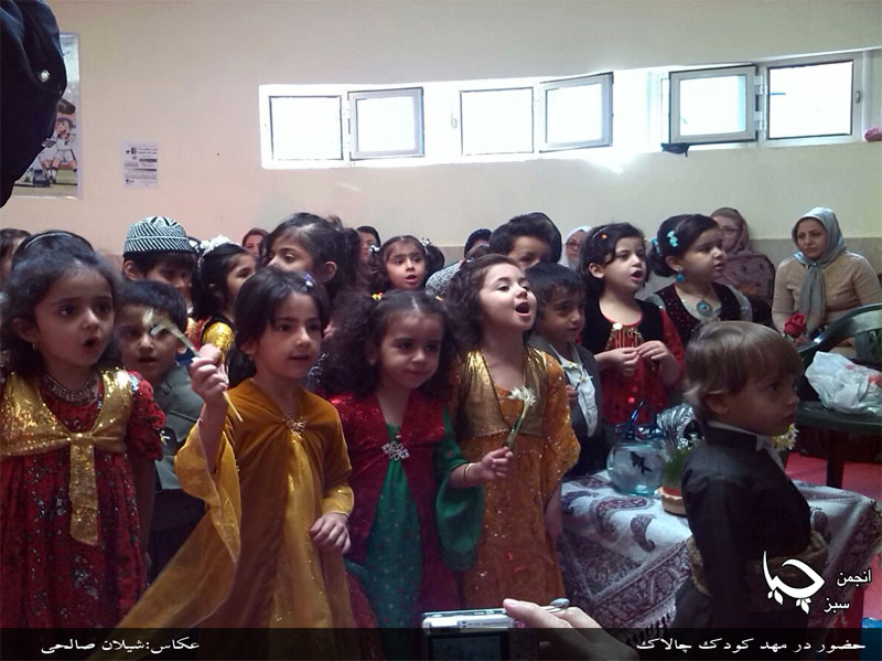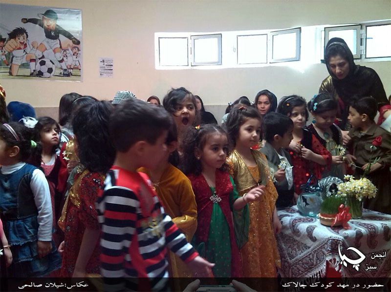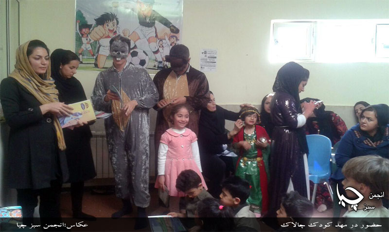 روز یکشنبه ۲۴ اسفند به مناسب فرا رسیدن سال نو و پیشوازی از نوروز مهدکودک چالاک اقدام به برگذاری برنامه ای باحضورکودکان و والدین آنها کردند، کمیته ی کودکان انجمن سبزچیا نیز در این مراسم حضور داشتند. ابتدا مراسم با اجرای دو نمایش توسط کودکان مهد شروع شد، بعد از اتمام اجرای نمایش کودکان،کمیته کودکان انجمن سبز چیا برنامه هایی که برای اجرا در این مهد کودک تدارک دیده آغاز نمودند.مربیان گروه تئاتر کودکان چیا با پوشیدن لباس های عروسکی و حضور در بین کودکان باعث ایجاد شور وهیجان بسیاردر بین آنها شدند، باجمع نمودن کودکان در دور هم، آنها را با مسائل زیست محیطی آشنا نمودند،سپس راه جلوگیری از آلوده نمودن محیط زیست و انتخاب الگوی رفتاری خوب با حیوانات را برای آنان توضیح دادند.بچه های مهدکودک چالاک که در همایش یک روزم برای زریبار نقاشی های را در خصوص دریاچه زریبار به همایش تقدیم کرده بودند، کمیته ی کودکان انجمن سبز به پاس قدر دانی از کودکان به هر کدام کتاب داستانی را تقدیم کردند.در پایان این مراسم از تمامی بچه های مهدکودک چالاک خواسته شد با حضور در کمیته کودکان انجمن سبزچیا سهمی از سالم مانده محیط زیست خود برای نسل های بعدی داشته باشند.
