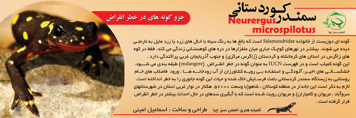 در راستای جلب توجه افکار عمومی به مساله منقرض شدن سمندر کردستانی که با زمینه سیاه و خال های زردرنگ، جزو گونه های در خطر انقراض و در فهرست سرخ گونه های در حال انقراض طبقه بندی می شود.، آقای اسماعیل امینی یکی از اعضای کمیته هنری انجمن سبز چیا اقدام به ساخت ماکت سمندر نمودند، که در یکی مکانهای تجاری شهر مریوان(مجتمع تجاری حاج محمد ویسی) نصب گردید تا ارزش این گونه در حال انقراض را بیش از پیش به مردم نشان دهد.