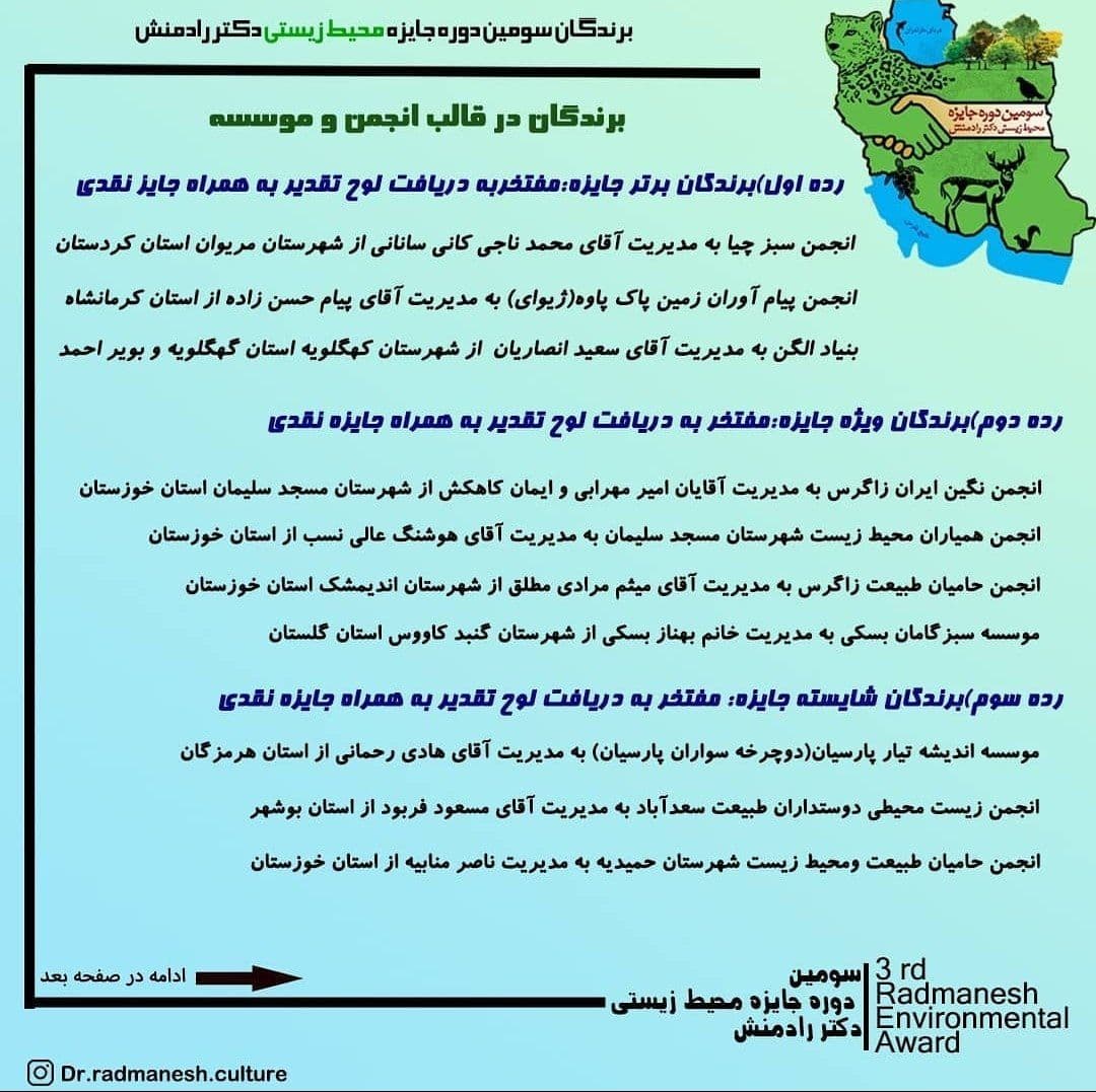 چیا پیشتر توسط مٶسسەی “رادمنش” نیز حائز مقام اول تشکلهای زیستمحیطی مد نظر آن مٶسسە واقع گردید.